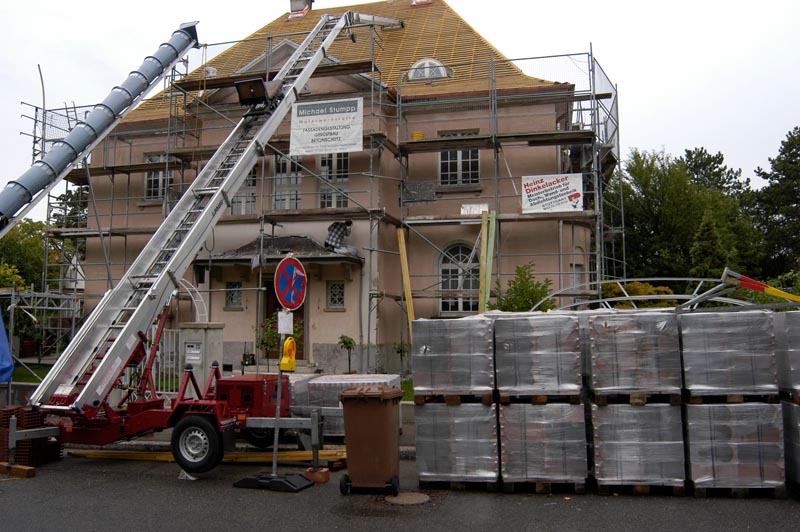 Gerüstbau und Hochdruckreinigung: Mit eigenem Gerüstbau und einer gründlichen Hochdruckreinigung schaffen wir eine saubere Basis, ohne zusätzliche Kosten.